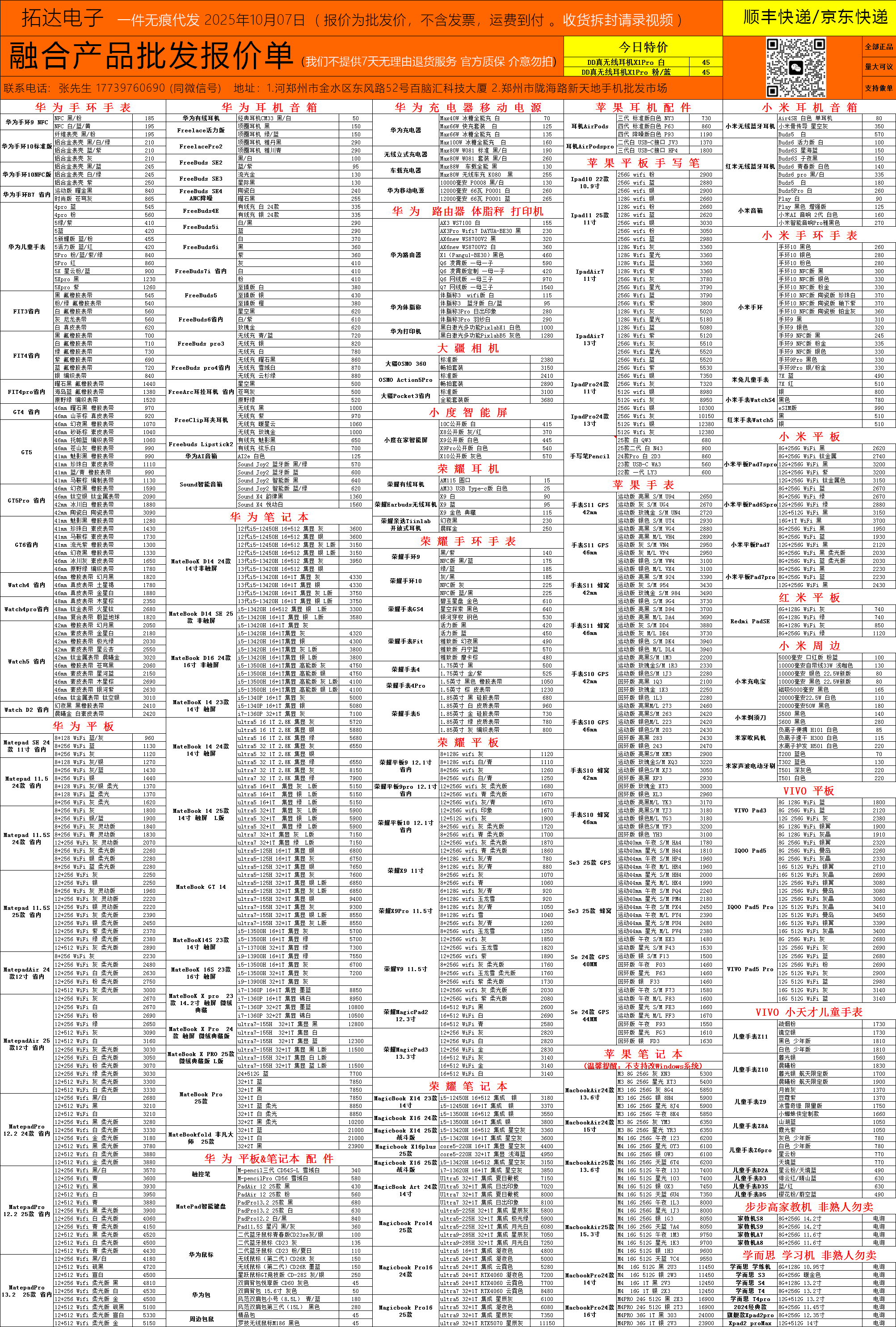 河南郑州科技市场华为苹果手表耳机融合批发报价-每日更新(2025-10-07)