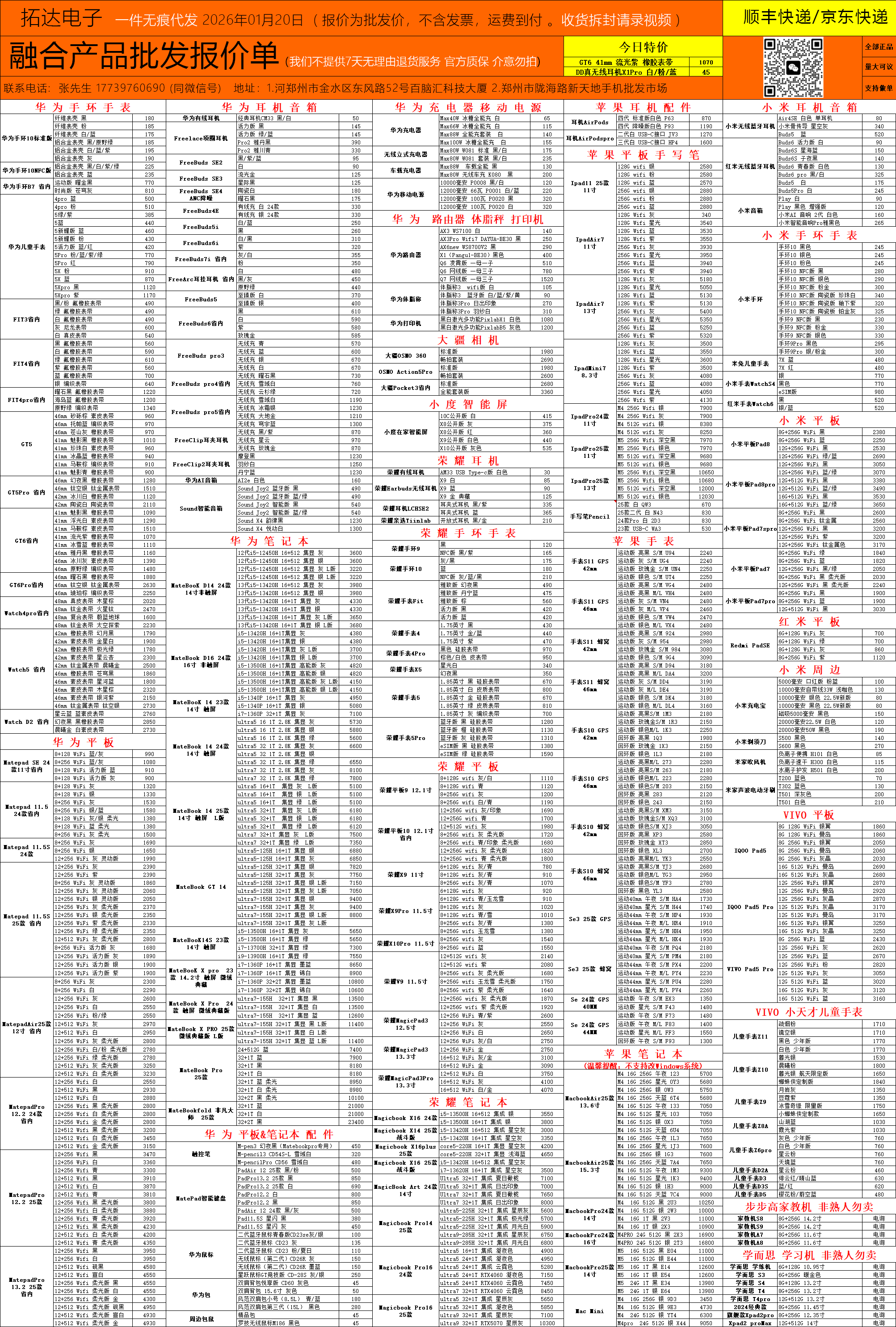 河南郑州科技市场华为苹果手表耳机融合批发报价-每日更新(2026-01-20)